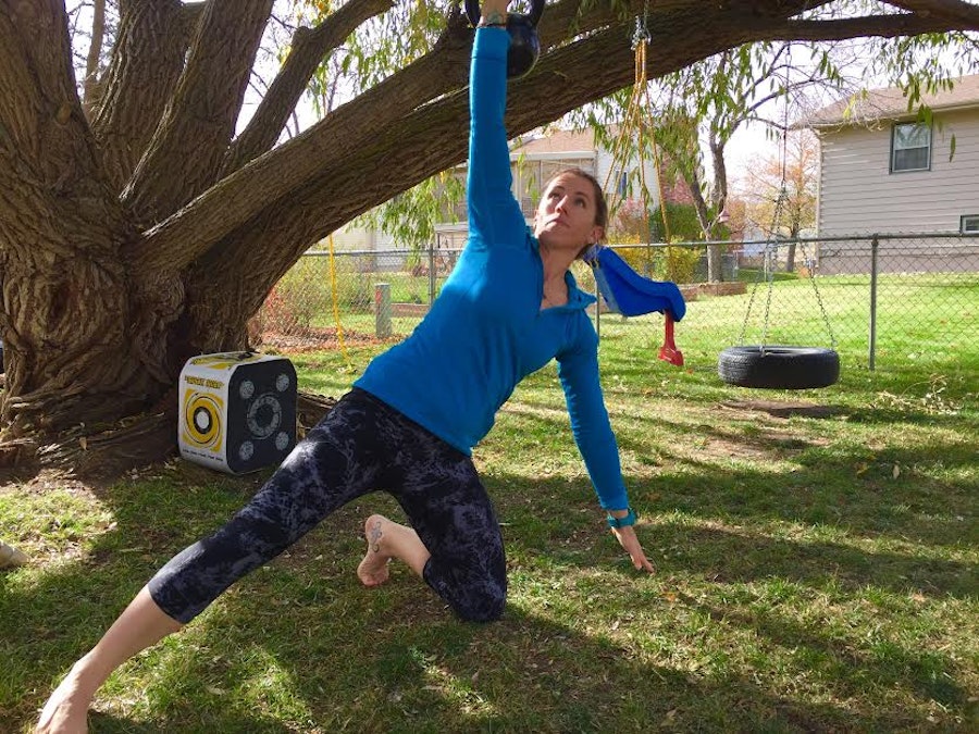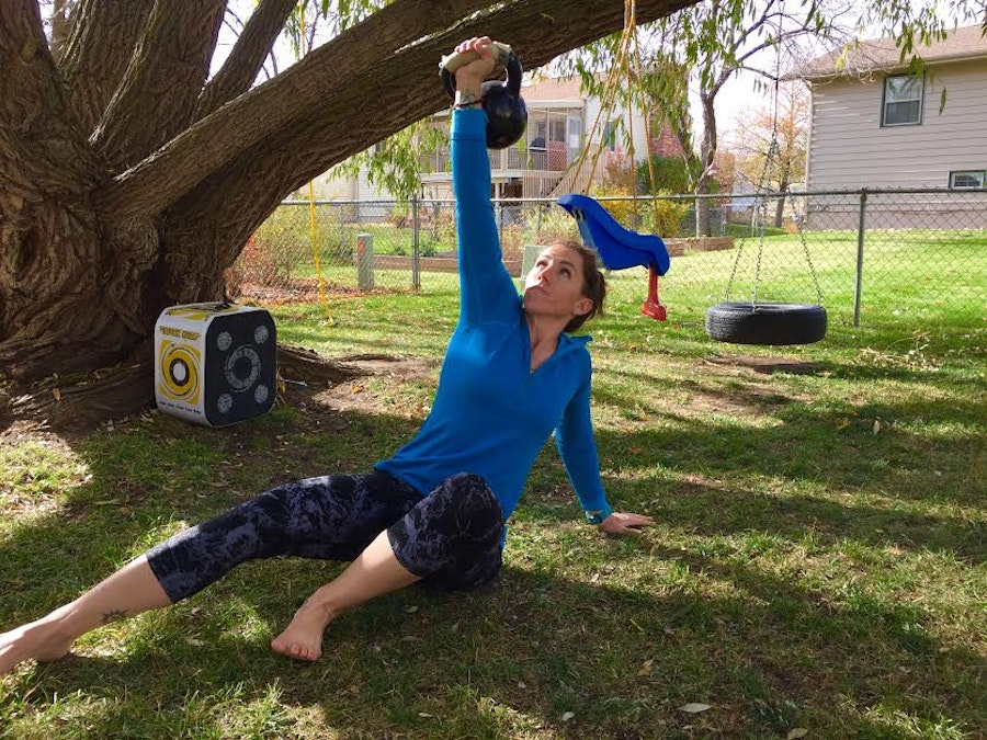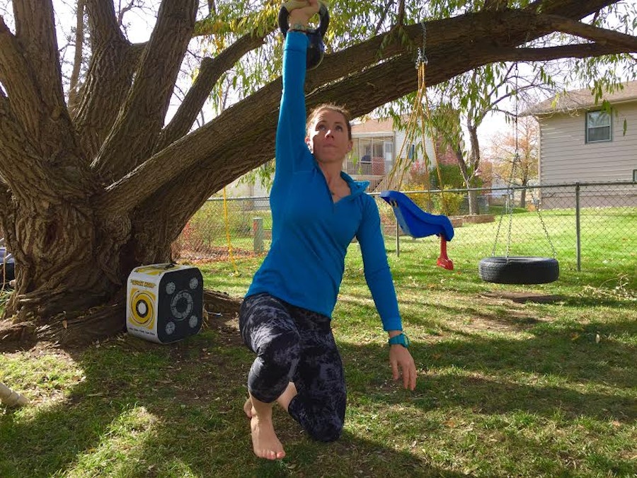 OK, this one may not seem overly functional because it’s not every day you have to stand up while holding a heavy weight over your head. However, if you can perform this exercise with ease and efficiency, I assure you, you can move into a standing position holding just about anything at any point on your body (“If you can dodge a wrench, you can dodge a ball,” type of deal).