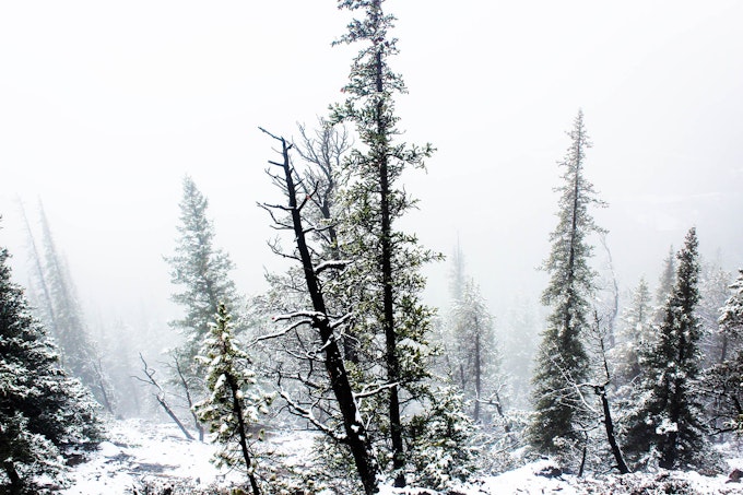 Hike Tunnel Mountain from Banff for views over the town and surrounding valley. Or if it's foggy and snowing that day, you'll see something like this...