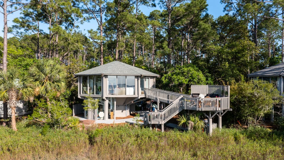 Hilton Head Island, South Carolina, is a dreamy destination for serene waterfront views. This isn’t your average waterfront home. It's set among the trees with sweeping 360-degree sights of trees, sky, and ocean. Be a child at heart again and get excited about the chance to sleep in a real life adult treehouse with beachy touches just steps away from the Harbour Town Lighthouse and marina.