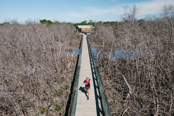 Our next adventure, continuing south along the Overseas Highway, brings us to Long Key. I went for a run along the Golden Orb Trail and loved that in a few miles I ran across several different surfaces: pavement, boardwalks, soft sand, hard-packed sand, fossilized coral, and even a little dirt. The trail also goes through several different habitats. It's only a little over a mile long but you can extend your run (or walk) by linking up with the nearby Layton Trail and also running along the park roads. Bring your camera or phone with you so that you can snap a few photos as there is an observation tower along the way that gives you great long-range views.