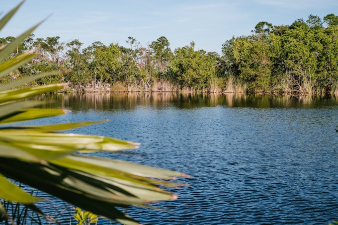 The Blue Hole on Big Pine Key (about 30 miles north of Key West) might look like a natural blue hole but it's actually an old limestone quarry that has been allowed to regrow back into a somewhat wild place. You'll find a small parking area with a trail that leads to a couple of interpretive signs and benches to observe the area. You are likely to see turtles, birds, fish, and even alligators. Note that this is not a place to go swimming.