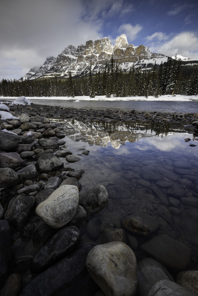 Post Minnewanka, we made a quick stop at the Castle Mountain junction to capture some of those juicy reflections of Castle Mountain in that midday Winter light.