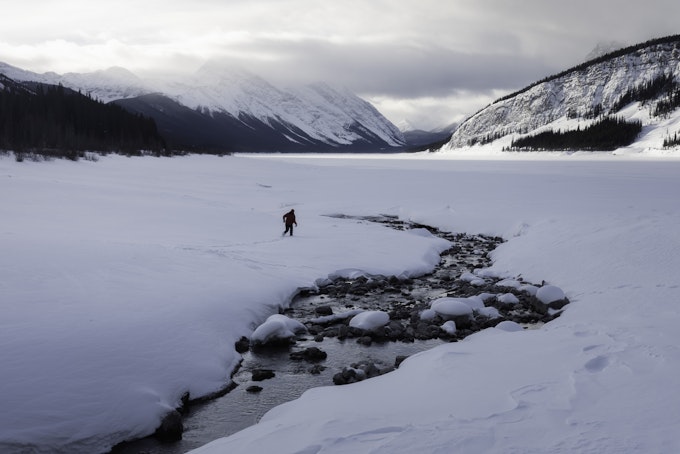 The snow was pretty deep and with some spots of open water, I didn't want to venture too far out onto the lake as there weren't any signs anyone else had been out there. Better safe than cold, wet, and sorry. After the stopping along Spray Lakes, we continued down along the road stopping at a couple roadside pull-offs to soak up the absolutely tremendous views of the snow covered Rocky Mountains of Canada. A short stop at the Kananaskis Lakes, we made our way back up to Canmore to conclude the day.