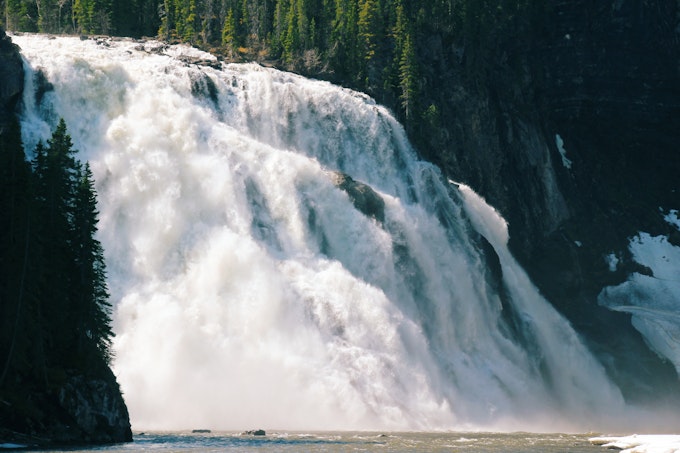 Take a moment in Dawson Creek to enjoy the Mile 0 Signpost and the wooden Kiskatnitaw River Bridge that curves high above a river at mile 21 just up the road. If you have more than a few moments, get off the Alaska Highway completely and drive south to Tumbler Ridge, 117 km south on the Heritage Highway and the gateway to Monkman Provincial Park. The town itself was built on a bounty of natural resources, from coal to uranium, and the area can be explored by zig-zagging down the far reaching forestry roads that lead to dinosaur tracks, countless biking and hiking trails to scenic waterfalls, but just watch out for the machinery. Monkman is a park within the foothills of the Rocky Mountains with a waterfall that is higher than Niagara, and far more impressive.
