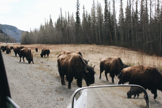 Pictured: Bison or buffalo near the Yukon border