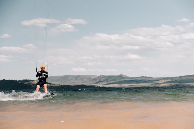 More proof that you need to add kiteboarding to your quiver of gear. Anywhere with wind and water is a potential place to kiteboard! Flaming Gorge was no exception. | Sarah Dalton