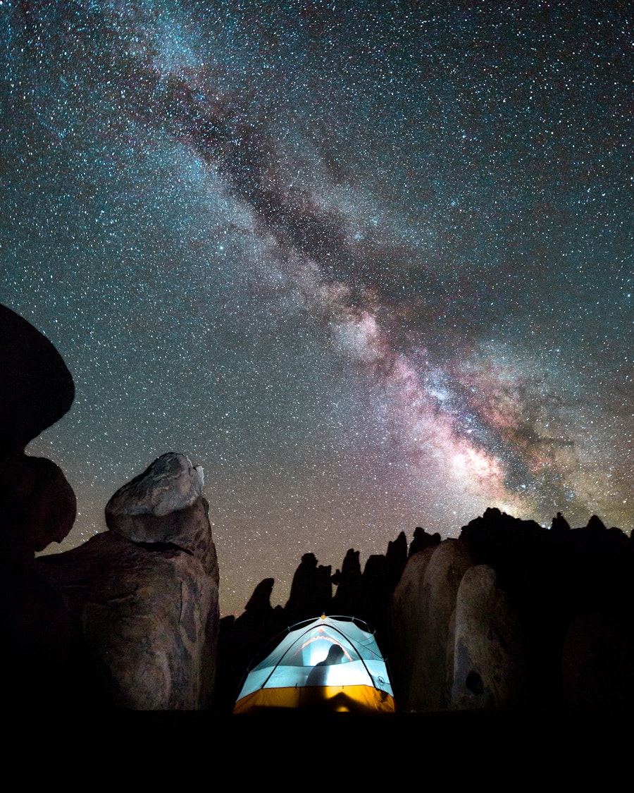There are legitimate maps that track the amount of light pollution in an area specifically for people that want to see, and photograph, the milky way. There's a lot more you could look into there but just know that between june-sept in the northern hemisphere if you go out to a dark sky at new moon you can see some wild stuff. Death Valley (also not far from Bishop) is one of the darkest in the US, and Alabama Hills just outside of Lone Pine (about an hour from Bishop) is a great place for some soulful silence... and, yes, stars.