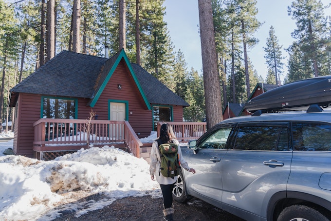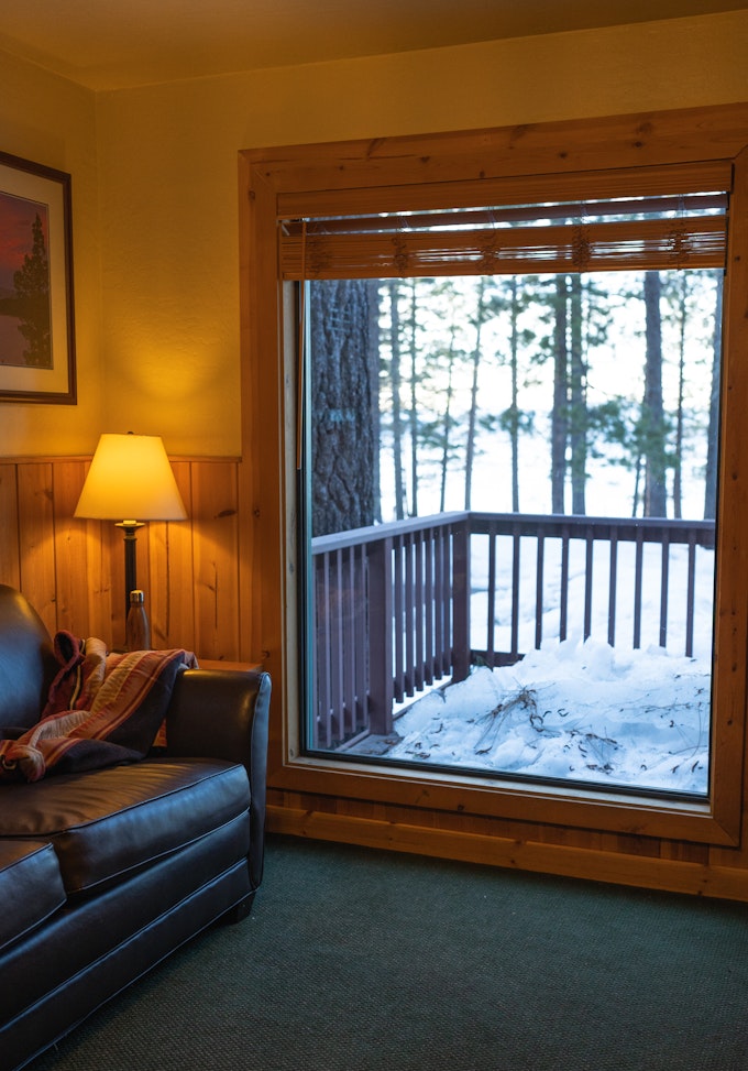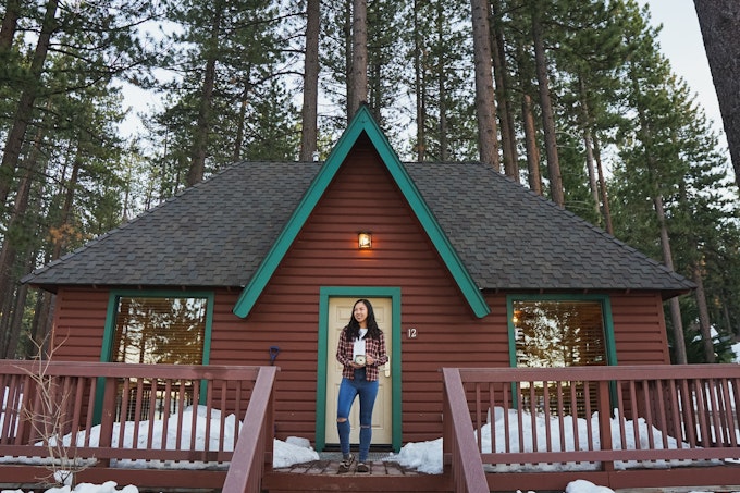One of my favorite aspects of the whole trip was having a gorgeous vista straight from the living room thanks to a large floor-to-ceiling window. Warm meals and computer work from the couch across the fireplace were made even more pleasant with the calming views of the natural landscape. Opening the blinds every morning was such a treat! The cabin faced big trees, white snow, Lake Tahoe, and the mountains beyond.