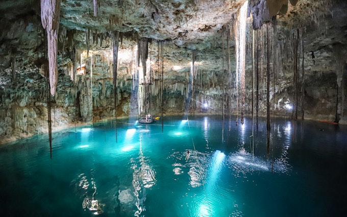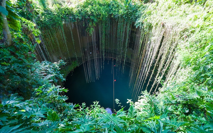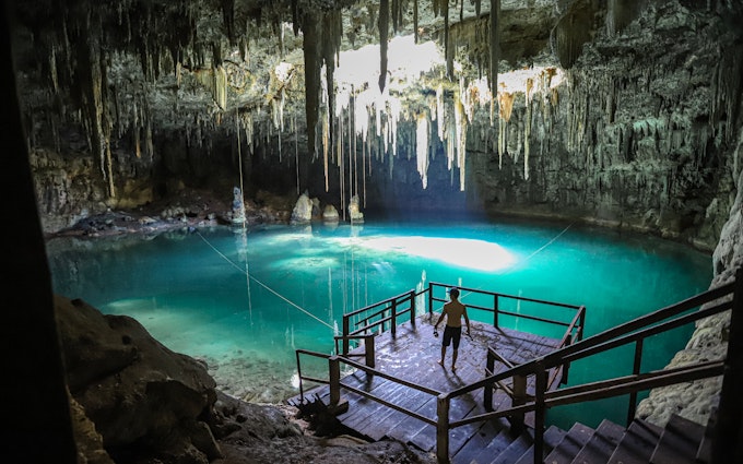 Descend into the limestone caverns at Cenote Xcanahaltun.