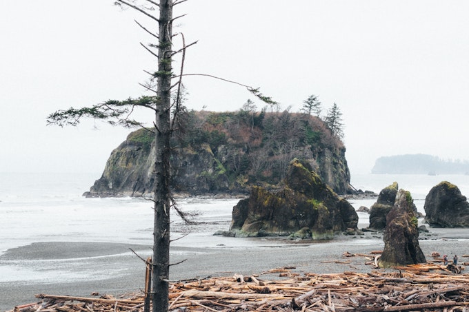 The sun was starting to set so we didn't have time to see First and Second Beach which are on my list as well. But we did stop at Ruby Beach a little bit further down the coast and it was all that I had hoped for. Giant rocks in the water, and half of the beach was covered in massive pieces of driftwood. You have to pretty much crawl over a wall of it just to touch the water. Accessibility is the greatest part of these places. Yes, I hate crowds. Yes, I don't like easy photos, but when you are worn out and you want to see a lot in one day you have to sacrifice quietness. If you do hate crowds like me then you can just wait for a miserably wet day at the beach, trust me, you won't see a soul! Well... you may just see me.