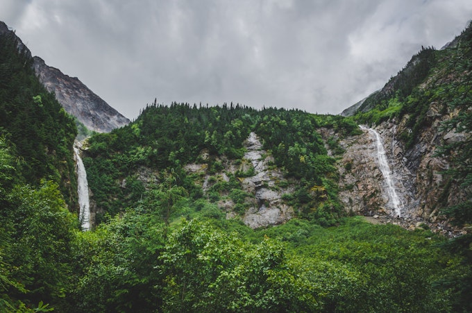 About four hours into the drive I arrived in Smithers BC; it is a small but beautiful town nestled among some big mountains. My first stop was Twin Falls Recreation site located at the base of Hudson Bay Mountain. The short walk up to the Twin Falls viewing platform is just under 1km and is a slight incline all the way up. The trail is well maintained and the waters are fed by Glacier Gulch on Hudson Bay Mountain. The area is stunning and peaceful.