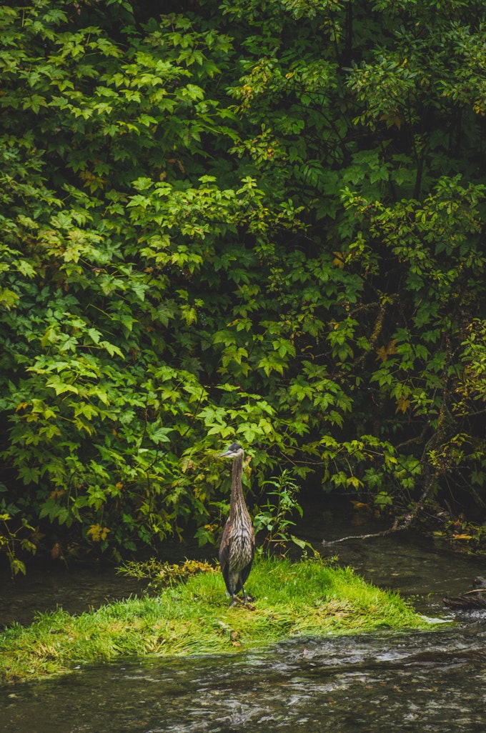 A Great Blue Heron in Fish Creek waiting for some salmon.