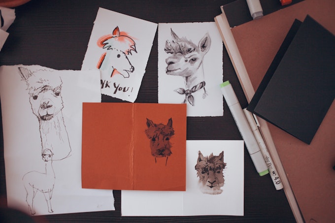 I'm putting in a few rewards for donations, like photoshoots, and these Alpaca cards I painstakingly drew on a rainy Sunday recently: