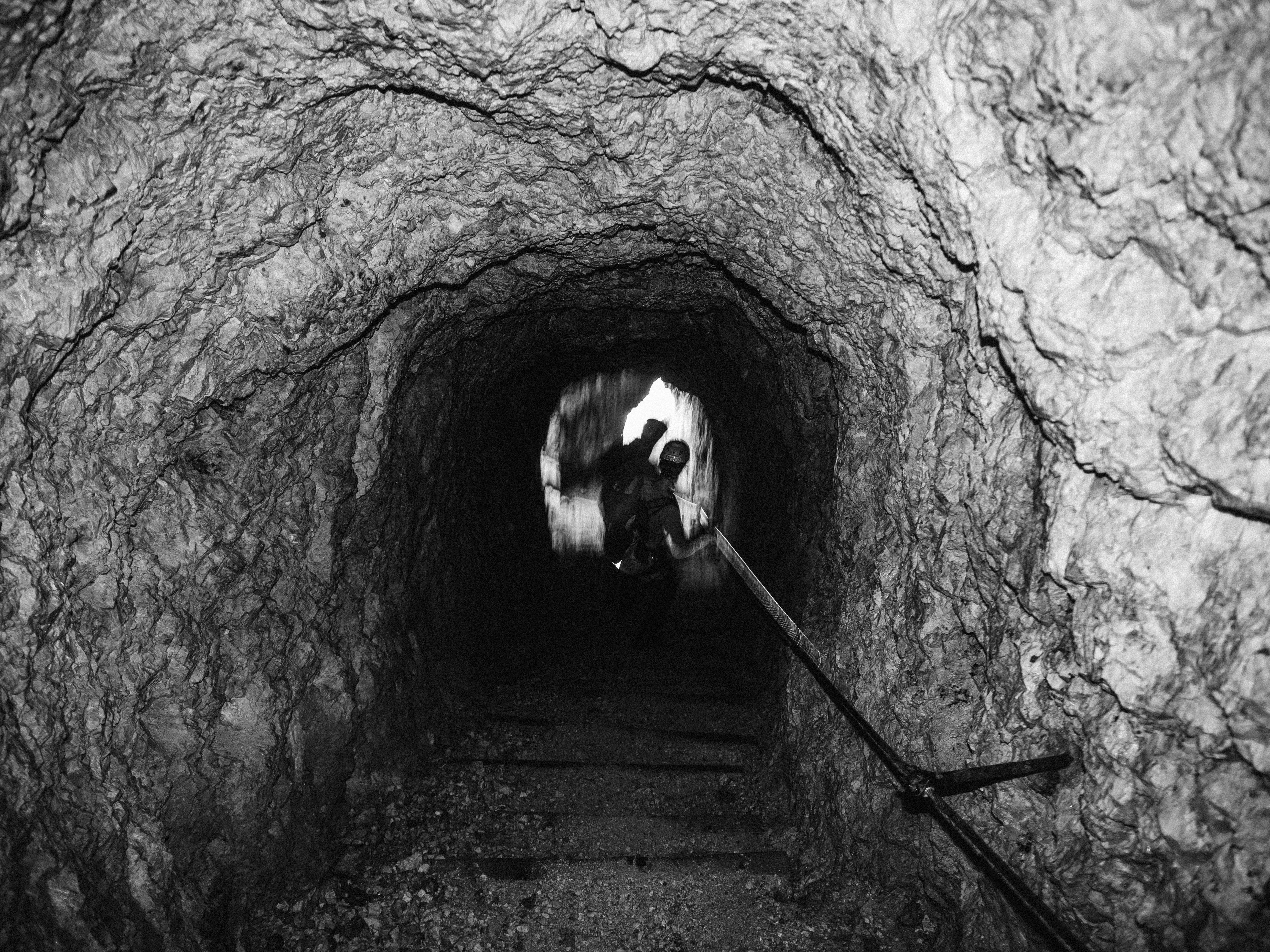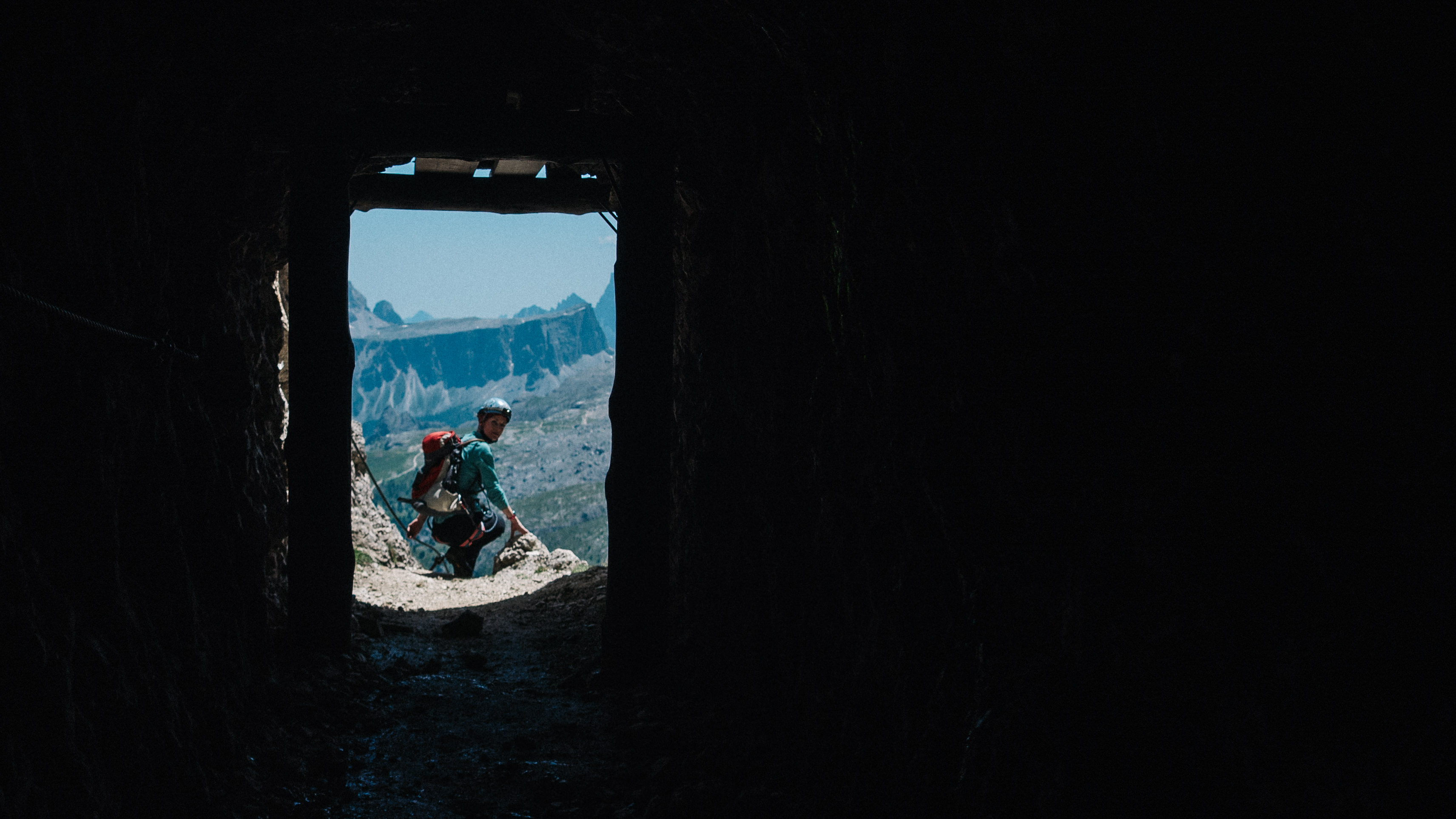 A maze of cold and damp tunnels that were constructed during WWI were our route back down (through!) the mountain. Occasionally through holes that were used as gun emplacements, we could see part of the route we’d just climbed up. [below]