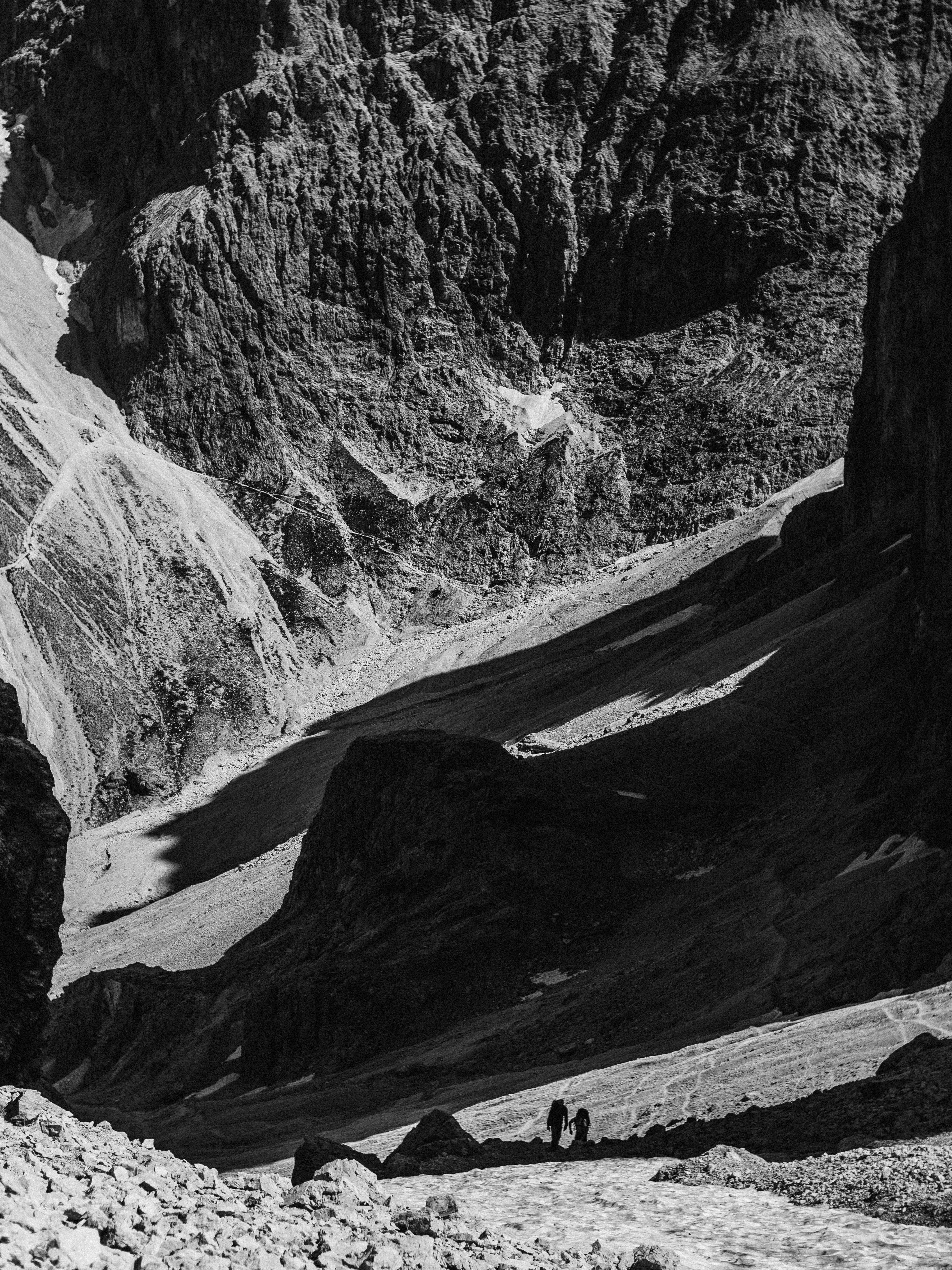 We’d encountered scree earlier in the week, and it’d taken us ages to descend, following a path that switched back and forth along the steep slope’s huge width. Mario pointed downwards.