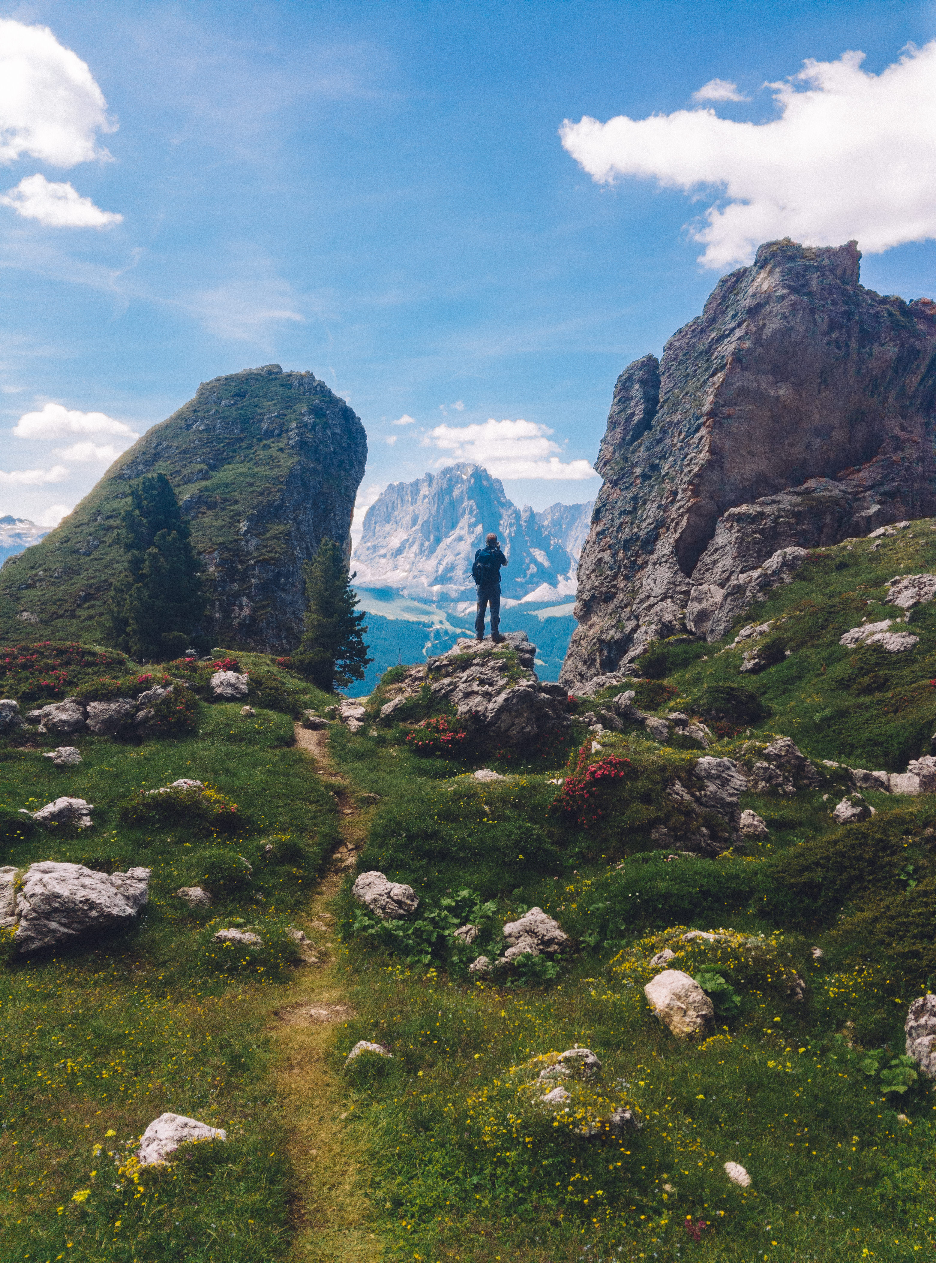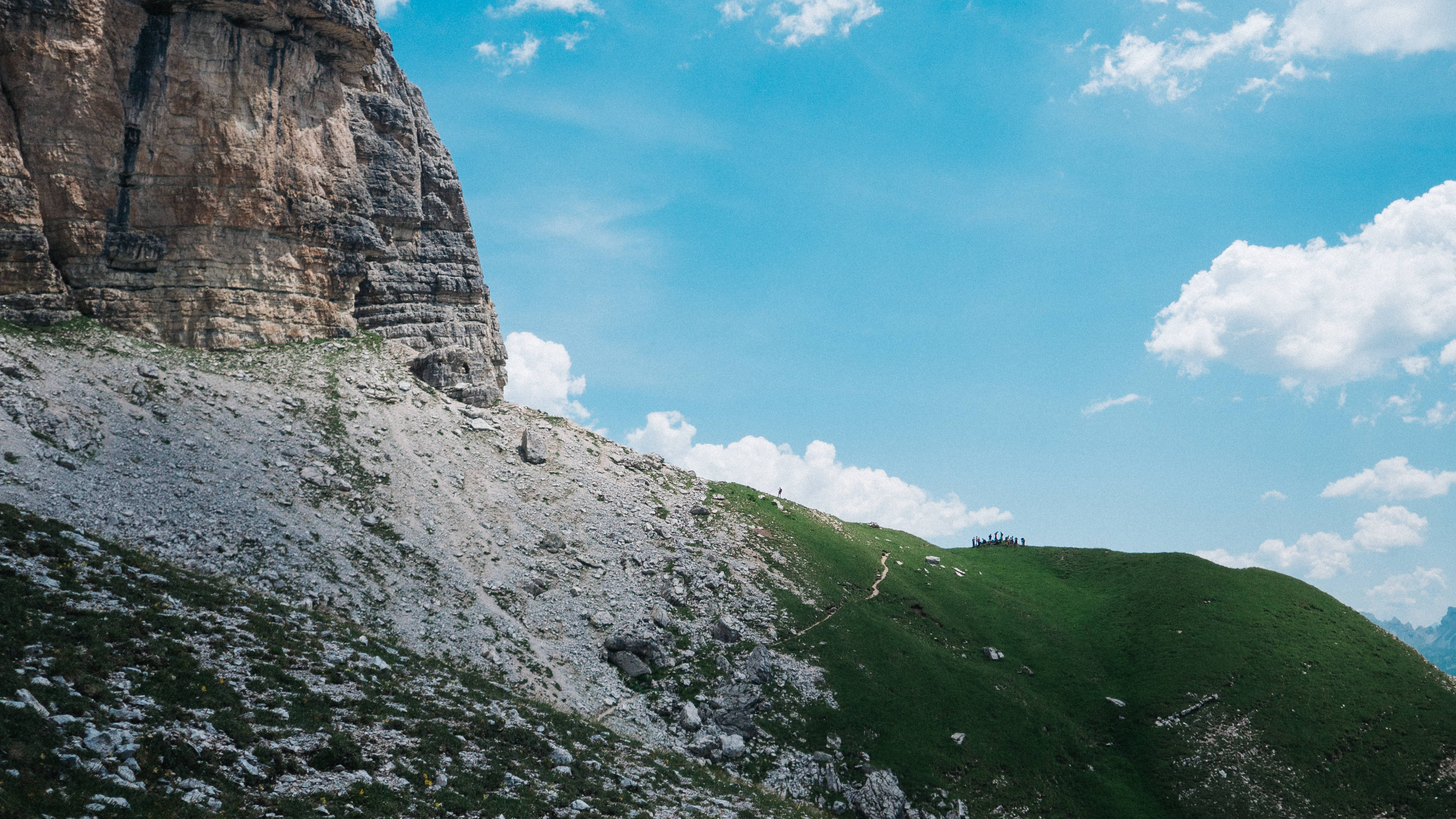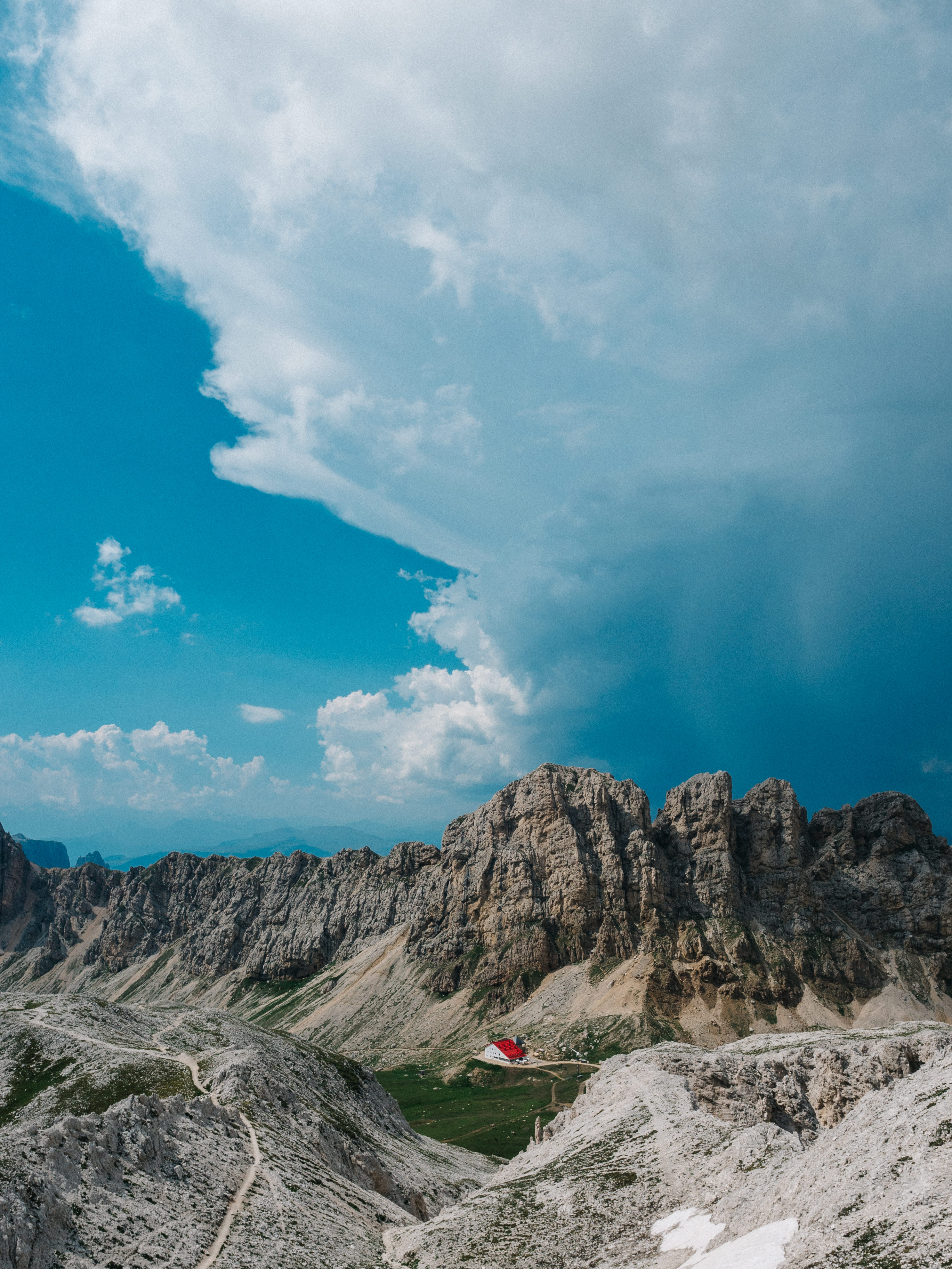 After returning down, we made our way along the path behind the rifugio - the one that winds it’s way diagonally up and right, following the ridge all the way into the pass. If you zoom in, you may be able to spot the red roof of Rifugio Alpe di Tires.