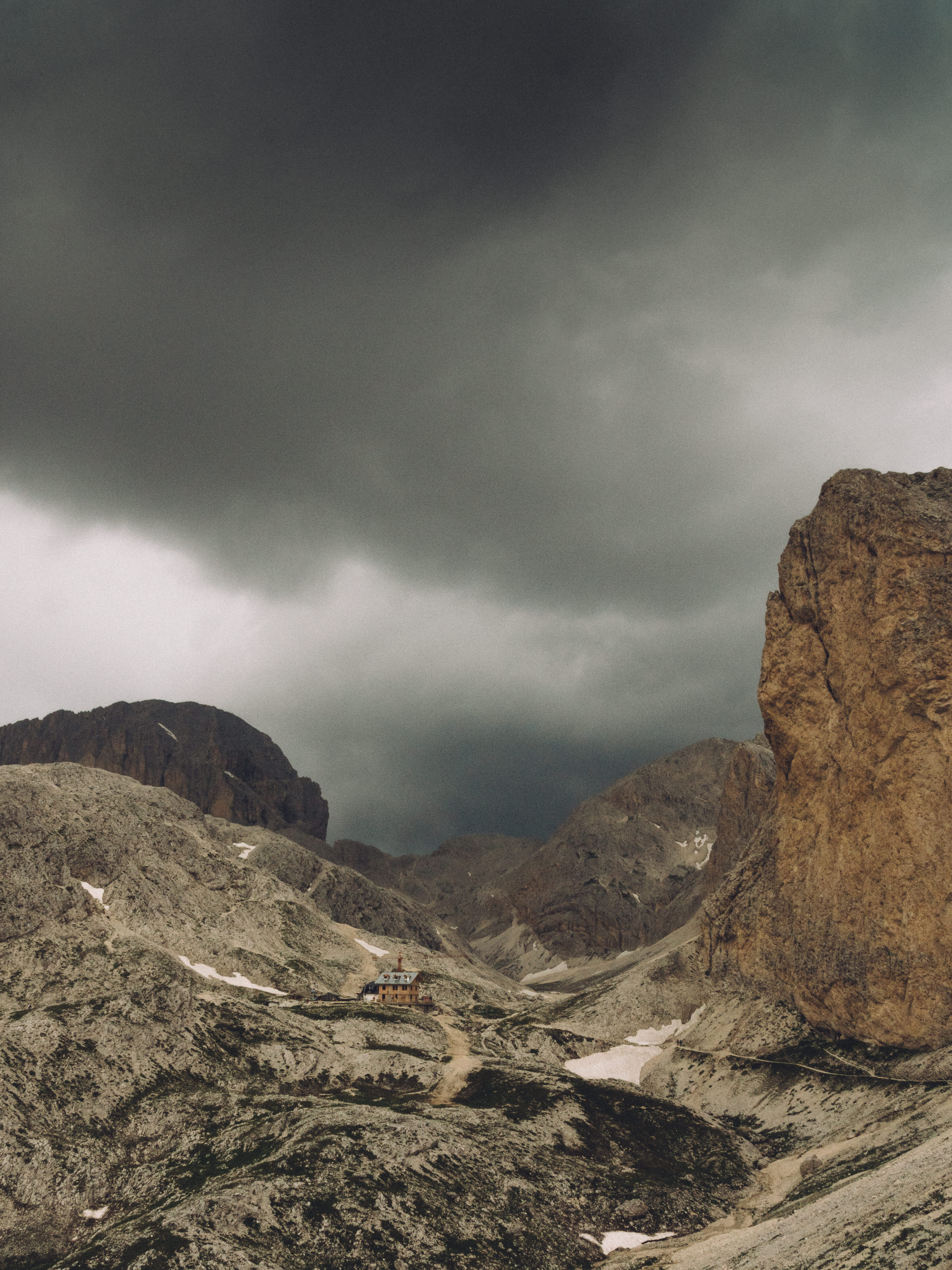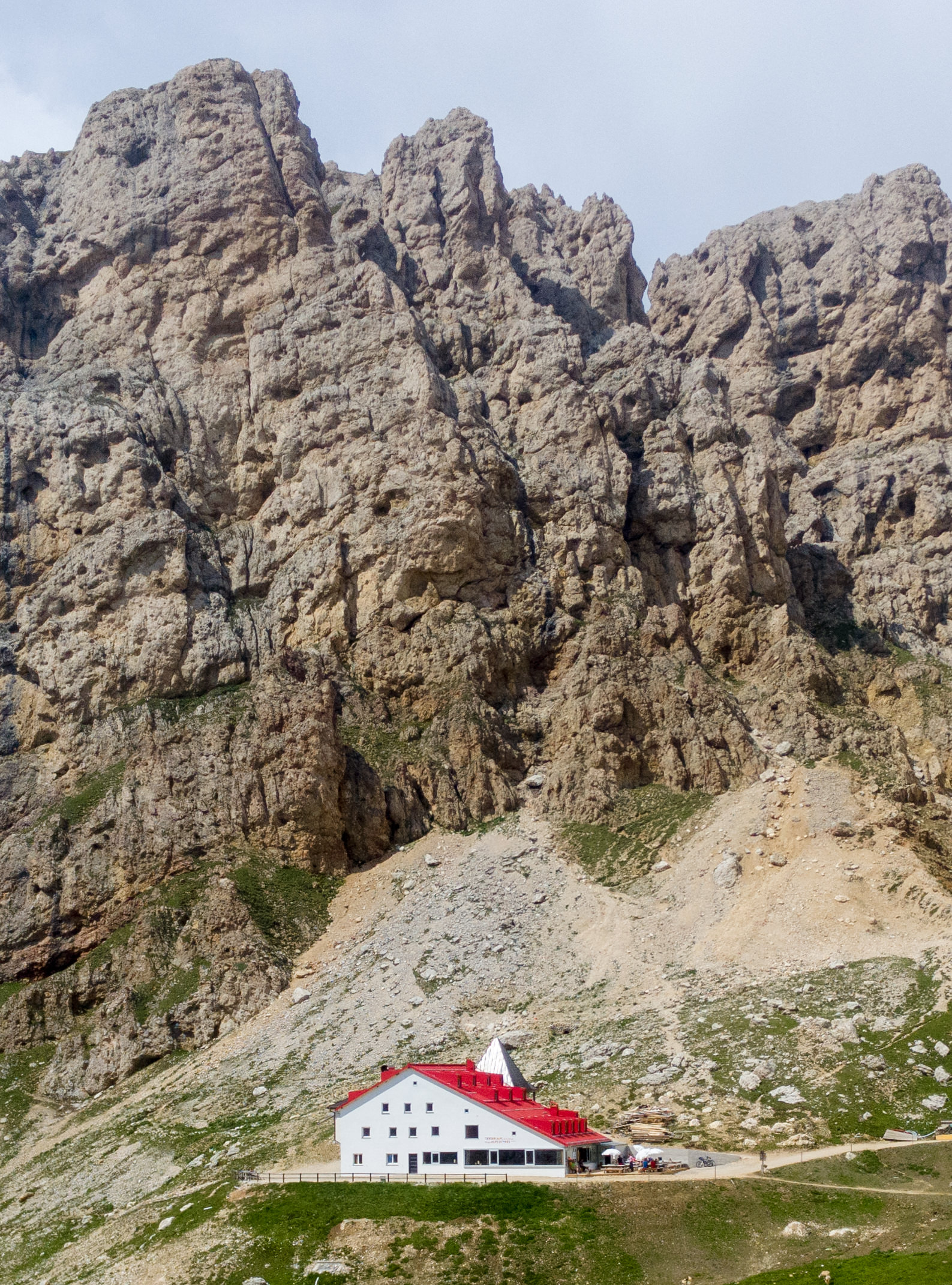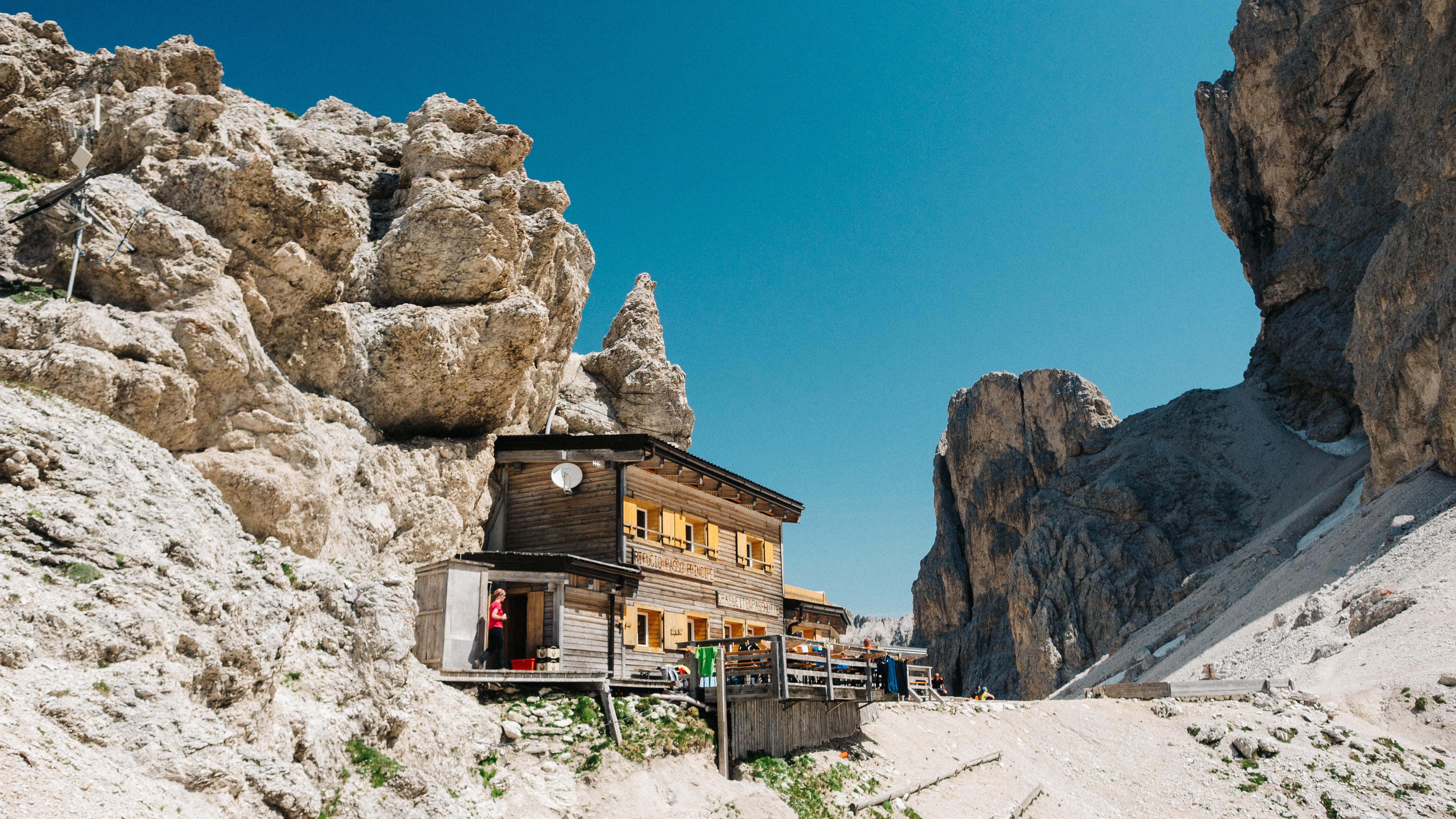 There’s a large network of rifugios in the Dolomites, some you can get to by cable car or 4x4, whilst others, like rifugio Passo Principe below, are only accessible on foot.