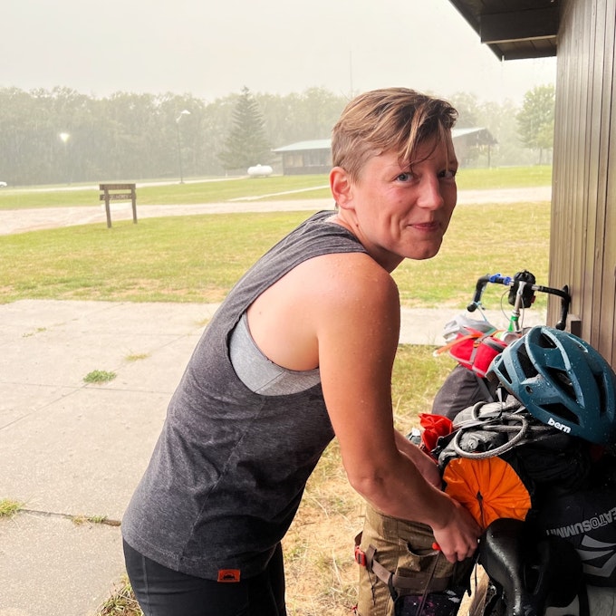 After one hour of waiting, we hit the road again during a quick break in the rain. Sadly, that gap in the rainstorm only lasted about 15 minutes. The last 30 minutes of our bike ride was intense and soggy. We finally pulled up to our campground at 9 p.m., soaking wet but happy to have arrived.