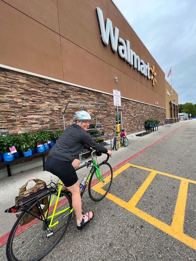 Inside Walmart, we were able to find an extra bike tube that would fit my bike but not Courtney’s. Much to our dismay, Courtney’s bike tires were specialized for road bikes. We quickly realized that the bike she was riding was definitely not the best for bikepacking. Its skinny tires and extra weight from the camping gear were not an ideal match. But, it was the only other bike we had with gears, besides the mountain bike I was riding. So, it was the only option we had.