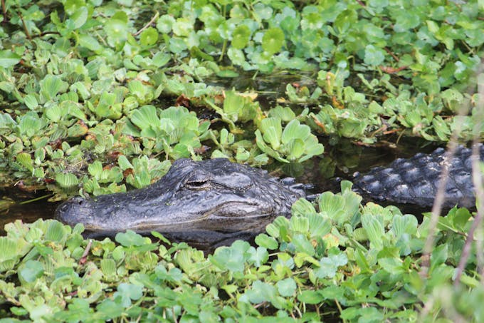 As the boat cruises the lake you will see alligators that follow the boat. The tour has been around since the 40’s and back in the day the conductors would carry bags of marshmallows to attract alligators. They’d throw the marshmallows into the water and slow the boats down. The alligators would surface to grab the treats thinking they were eggs. Even though an alligator's brain is the size of a walnut, the older ones have retained that memory and surface today looking for marshmallows.