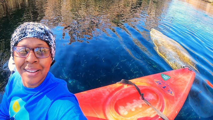 Along the river, there are places to pull off and swim. There’s even a food boat to grab a snack or water. The highlight of this adventure for me is when we saw a small family of manatees swim right underneath our paddle boards. It was the most surreal experience ever! I did have to yell at a few unthoughtful humans for chasing behind the herd but other than that it was a perfect day at the springs to connect with the world around me.