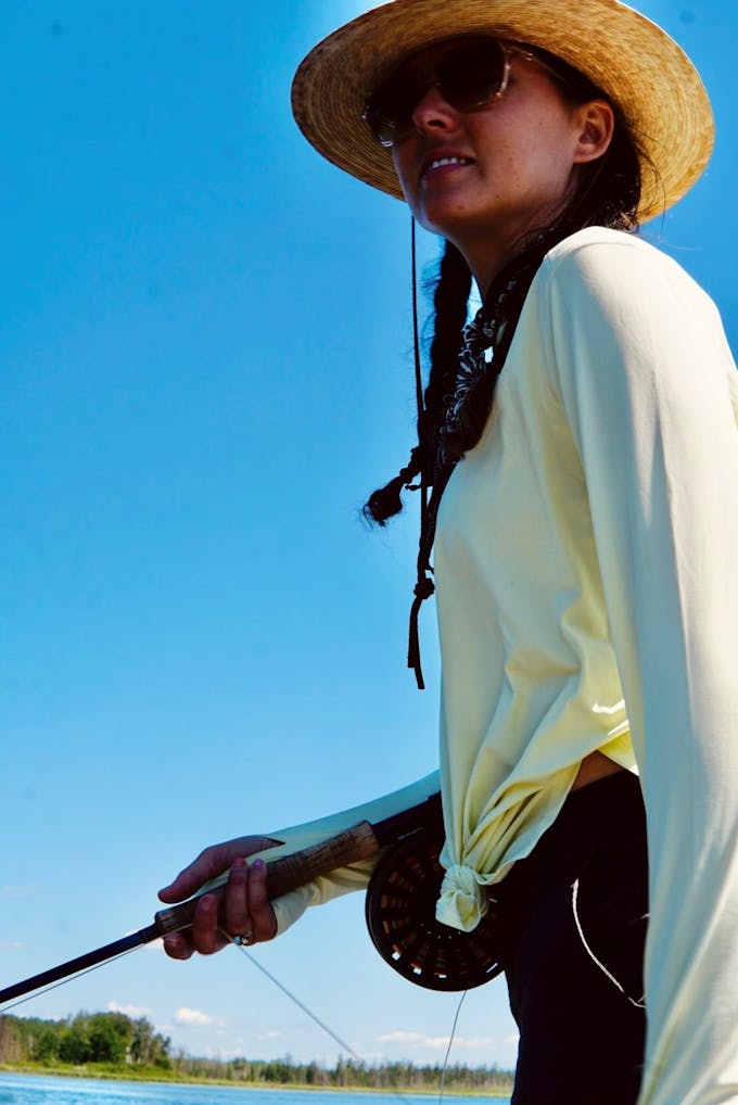So many sun shirts made for women don’t have a hood on them. When I am fishing, I am hyper-focused and will forget all about what my body needs, so having that hood helps give me another layer of protection when I go for hours and forget to reapply that sunscreen. I can just toss the hood up over my hat, neck, and face for that added protection. It is also always nice when traveling by boat and you can put the hood up over your hat so it doesn’t blow off your head.