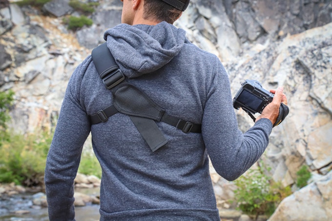 Until this point, I typically carried my camera against my side using a neckstrap or kept it at the top of a day bag so that I could quickly grab it on a trail. Both options had some serious downsides - the neckstrap usually letting the camera hit my side in the same spot repeatedly over the course of hours, and the backpack requiring me to stop, whip off the pack and open it to grab the camera, which can also get annoying if done frequently.