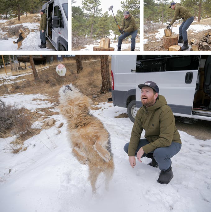 In terms of functionality so far the Shadow has lived up to the hype. It keeps me warm when I need it to and it hasn’t turned me into a sweaty mess on the mountain. It offers good breathability while maintaining its wind resistance. I’m not sure this would be my choice as a wind layer for cold and windy alpine starts but those usually call for specialty layers. The Shadow is water resistant. I’ve had it out in a light Colorado drizzle and it kept me dry. Because of the synthetic material, it will still insulate when damp. This is great news for chopping wood in the snow or traveling in the van in the winter.