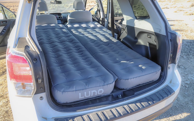 Overall, I've been excited to find out that this air mattress is out there, and have been able to take advantage of some of the possibilities that turning your car itself into a camp site has created. It's sizable enough to comfortably sleep two people side by side, and long enough that I'm able to stretch out. We now keep our Luno Air Mattress at the ready for anytime we want to head out for a weekend, and it has definitely upped the possibilities as far as camping locations and conditions is concerned.