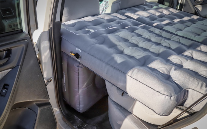 An air mattress kit custom fit for your vehicle that makes camping in your car a more comfortable endeavor.
