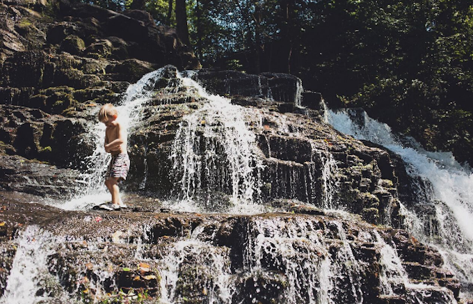 SHALLOW WATER- This waterfall is perfect to play in with shallow water at the bottom and a few levels to climb around on.