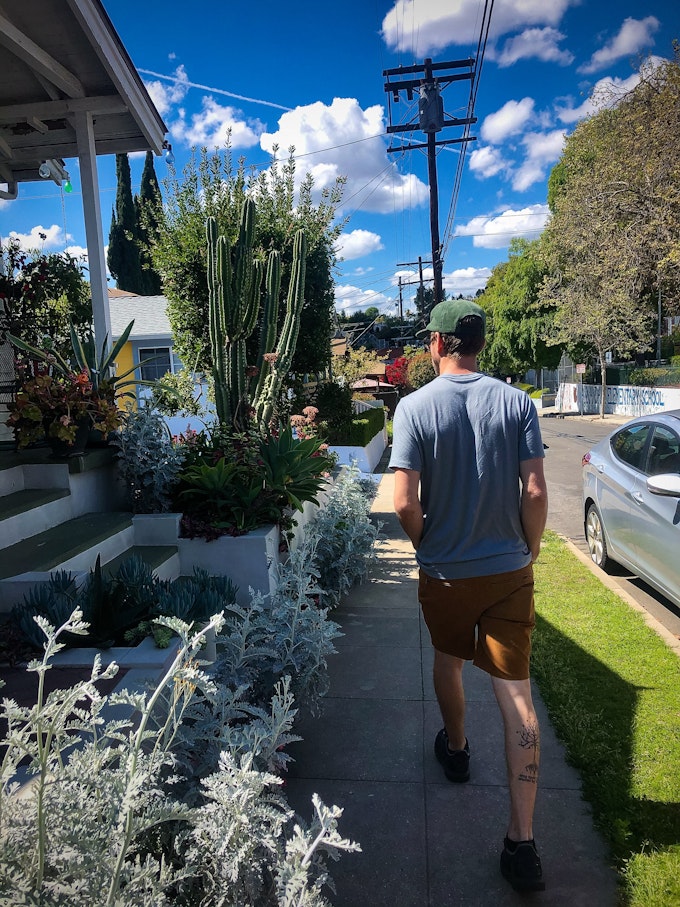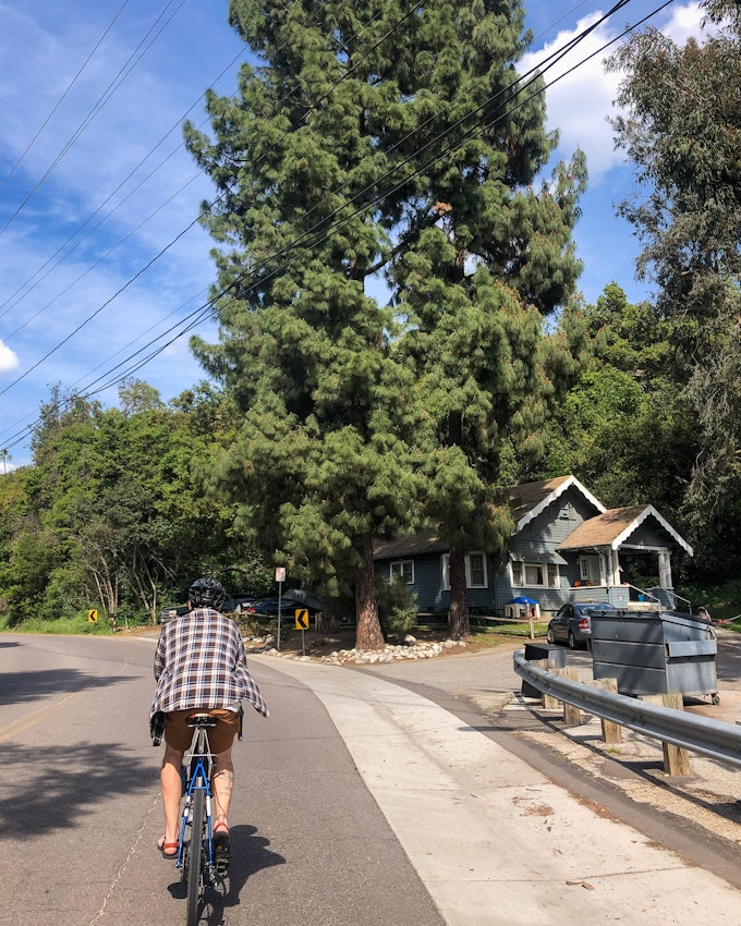 Even so, a few things have actually changed for the better. With the reduced traffic, my girlfriend and I have been going on bike rides all over East LA. We’ve roamed the streets of Highland Park, rolled up to Pasadena, down to Atwater Village and along the LA River. We climbed up Stadium Way—usually jam packed with traffic, but now car free—to look down on Dodger Stadium and downtown. The air is clear and crisp with the reduced emissions and recent rain. Most of these rides only begin with a loose plan, and then we spur off down new streets and into enticing neighborhoods.