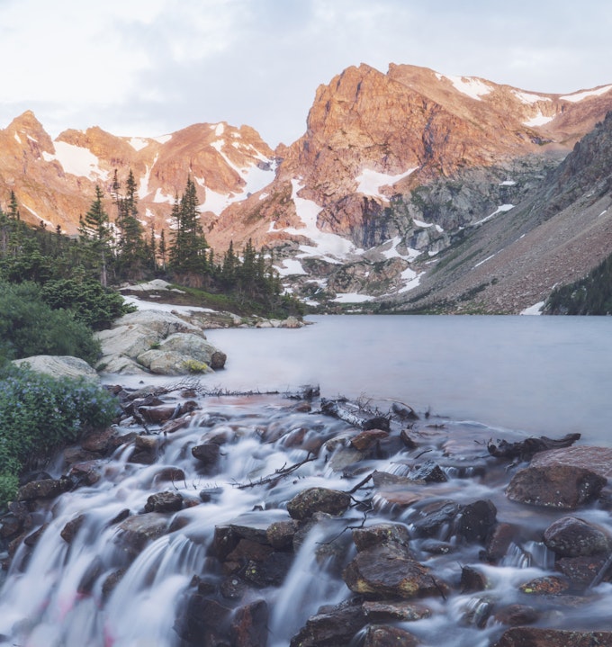 I had made the hike to this lake several times before, but this year there was a particular image I wanted to shoot. I wanted to show the lake with the glow from sunrise on the peaks in the background. I had to make this hike a few times before I finally got the conditions just right. Shortly after we arrived, the sun lit up the peaks perfectly for just a couple of minutes before the sun went back behind the clouds. Click here to check out this hike on The Outbound.