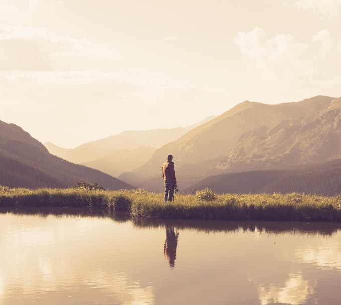 It's hard to find an environment better for adventure photography in the summer than high-elevation alpine tundra. This particular pond is one of my favorites because it's located dramatically on the edge of a high saddle above tree line. On this morning we stood near the pond taking photos of each other in the near-perfect reflection.
