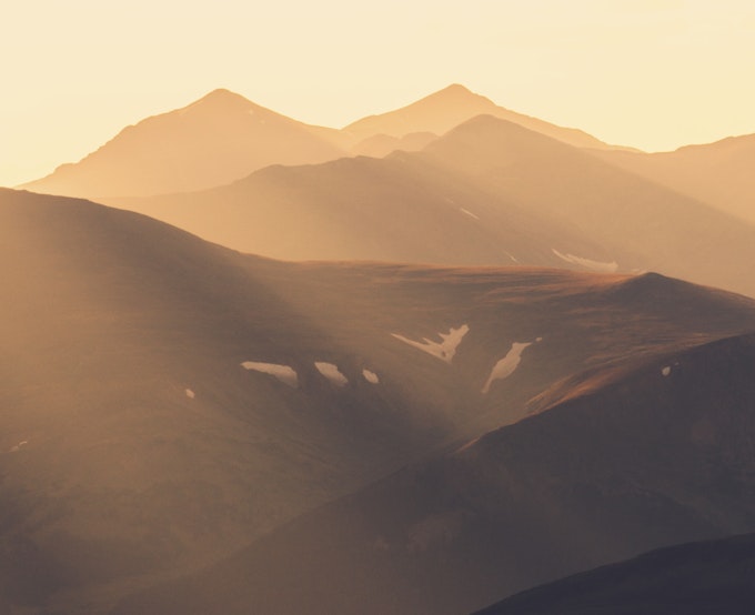 Easily one of my favorites from this summer, this photo was taken on the trail up to Mount Evans, a 14er less than two hours outside of Denver. Northern Colorado had been covered in a thick layer of smokey haze for a few days prior to our hike. Smoke from all the wildfires in surrounding states had made its way into Colorado, giving us the perfect atmosphere for photography. The sunset lasted nearly an hour, peaking in and out of the clouds and creating dramatic light beams in the valley below. I don't know if I've ever taken so many photos on one hike. For more about Mt Evans, click here.
