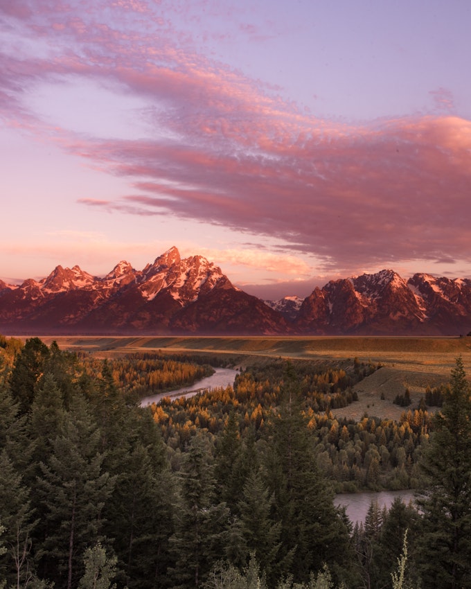 The famous Snake River Overlook at sunrise.