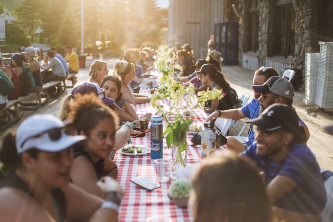 Back down at basecamp the mountain carves out a golden sunset at dinner time. The tables are set and people spread out to mingle and chat through schedules for tomorrow. Tito’s are pouring ice cold moscow mules and the Kenwood wines are flowing.