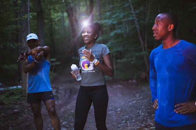 Somehow a few of us misinterpret the “Night Cap Trail Run” and show up enthusiastically, drinks in hand. It’s been a while since I’ve run anything but Brooklyn pavement, let alone at night, but I’ve got a new lease on life in my Merrell trail runners and an awesome new running crew, complete with portable speaker and high energy levels. Turns out you can run with a post-hour buzz...