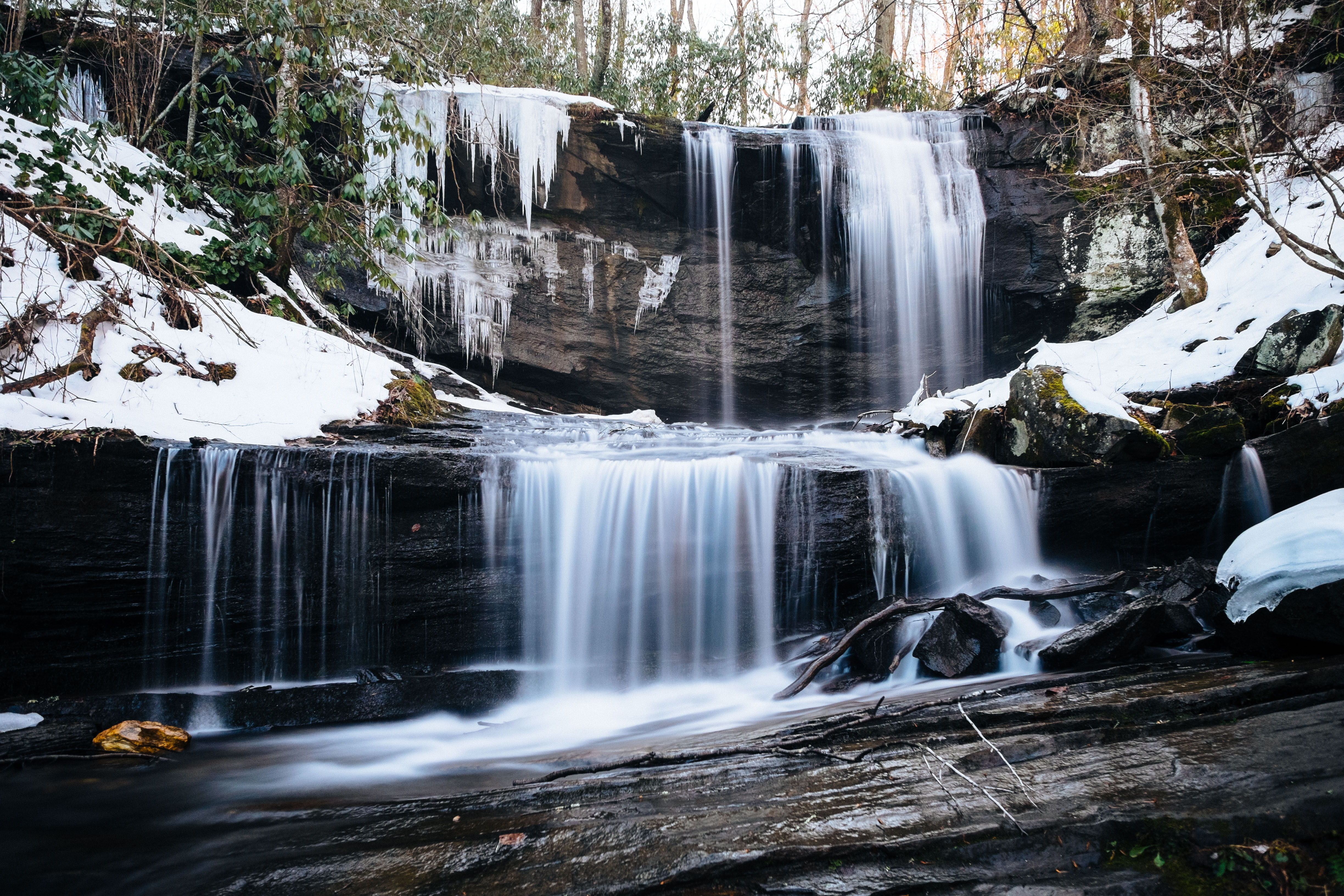 Grassy Creek Falls is a gorgeous hike in the Blue Ridge Mountains, an easy day trip from Charlotte. This two mile round trip hike is perfect for families and all skill levels year round: offering an escape from the hot summer months or a wonderful snow hike with large frozen icicles in the winter.