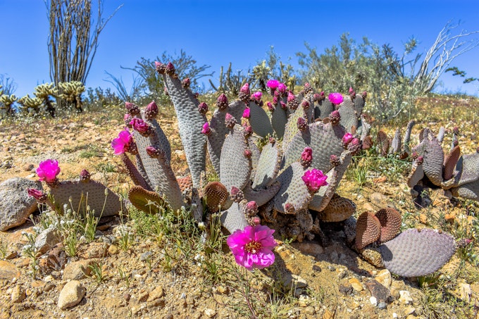 Next we headed up to Coyote Canyon, we stopped at a picnic area called Desert Garden on the way up the dirt road to the canyon. Desert Garden was nice and had some ocotillo and wildflowers blooming. Some of the cactus were also starting to bloom.