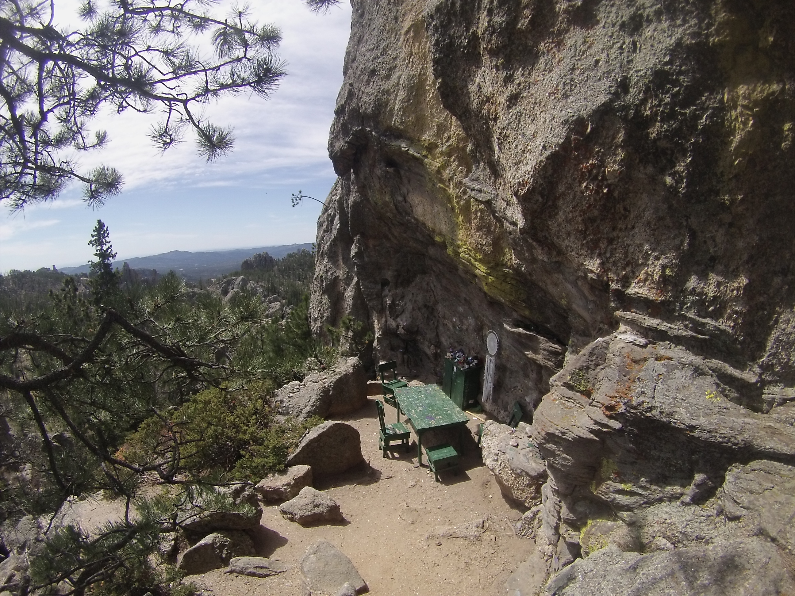Get off the beaten path in Custer State Park with a scramble up to Poet's Table. Dig a notebook out of the cupboard and write a few lines to leave behind, while admiring the view from the secluded ledge.