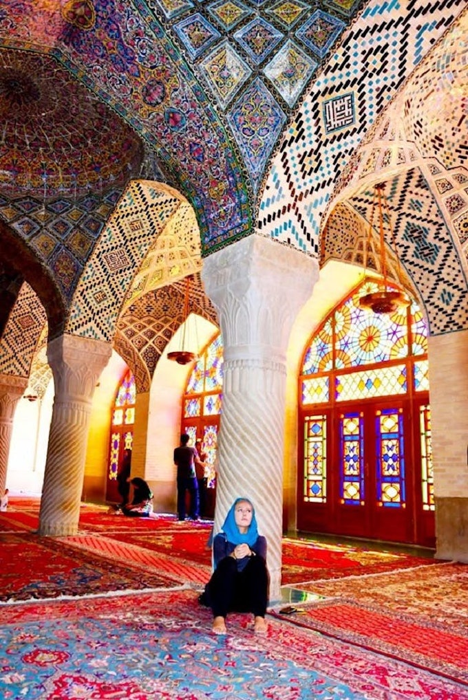 "It was disheartening to find out that the mosque was located in Iran, a place I thought I would never get to travel to," she shares. "A few days later, I applied for a job at MT Sobek and went on to become the Adventure Coordinator for Asia. A position that coincidental enough included coordinating our Treasures of Iran trip. Within a year, I was sitting in the exact spot where that old photo of the Nasir-ol-molk mosque was taken. That moment in that mosque will forever be my favorite travel memory.”
