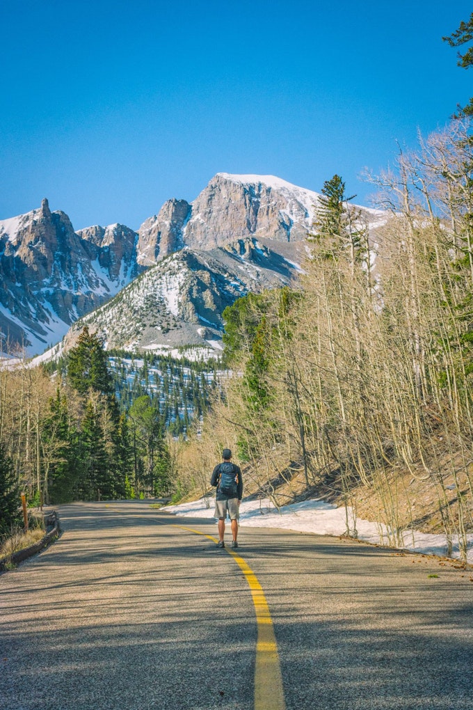 Wheeler Peak Scenic Drive with Wheeler Peak in back - Great Basin National Park, NV