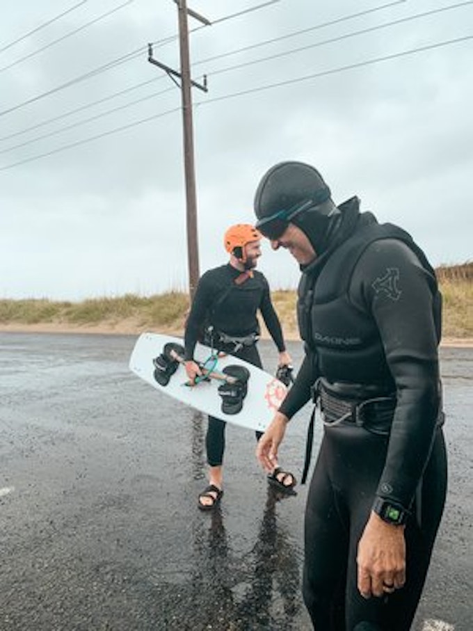 - Fight my way into a sticky sandy wetsuit still cold and damp from the day before.