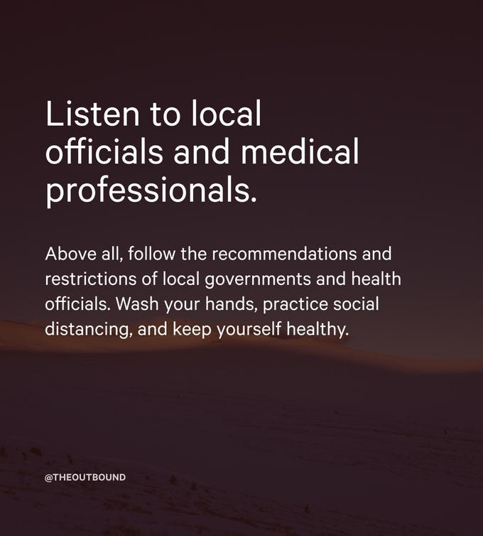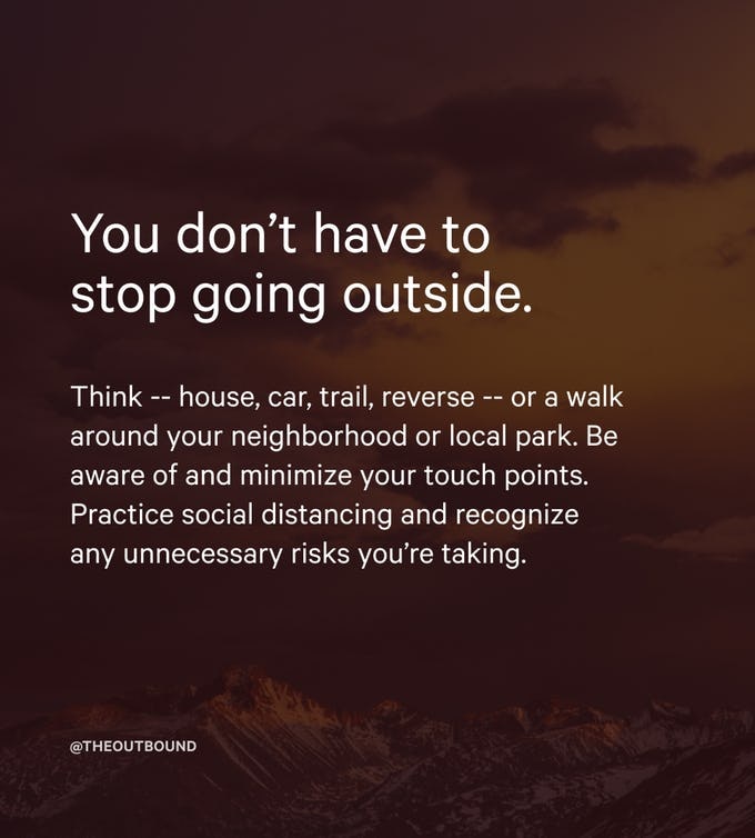 But for now, we all need to adjust. The sooner we take this seriously, the sooner we can get back to mountain summits, whitewater paddles, and beachside wanders.