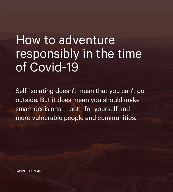 We also know that you probably feel these closures more deeply than others, because adventure is a part of your DNA. We get it. And we're right there with you (did we spend the weekend wistfully dreaming of all the adventures we'll take once this is all done? Heck yes, we did).