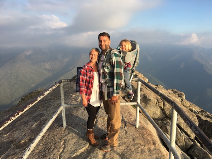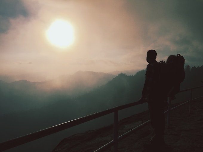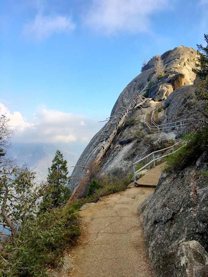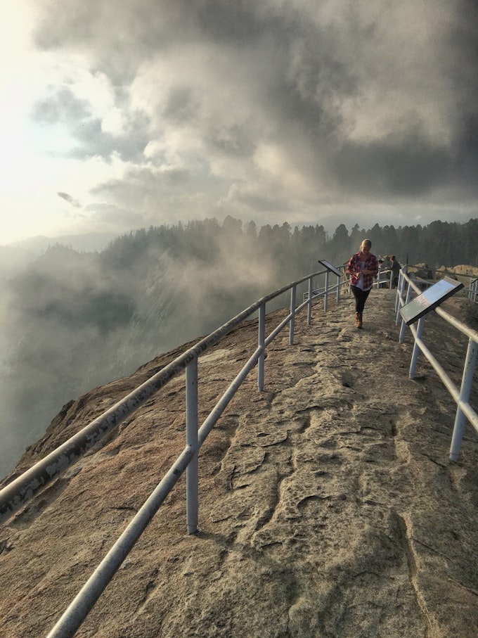 After taking a little snack break in the car after our nice hike to Tokopah Falls, we made our way back down Generals Highway to catch the sunset at Moro Rock. Although our intention was to do Moro Rock first thing in the morning, that afternoon offered absolutely gorgeous 360° views that we would not have been able to experience earlier. We were sitting in the middle of the clouds, watching the sunset over the high sierras, all alone. The hike up took approximately 11 minutes, and that was with the extra 35+ lbs lugging my daughter in our Thule Sapling Elite.