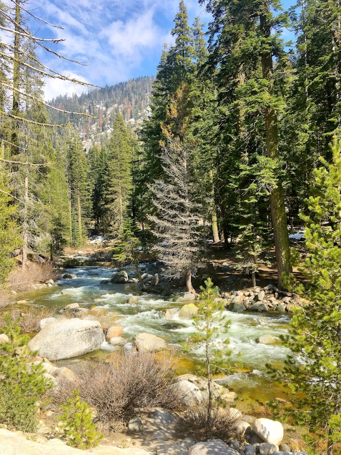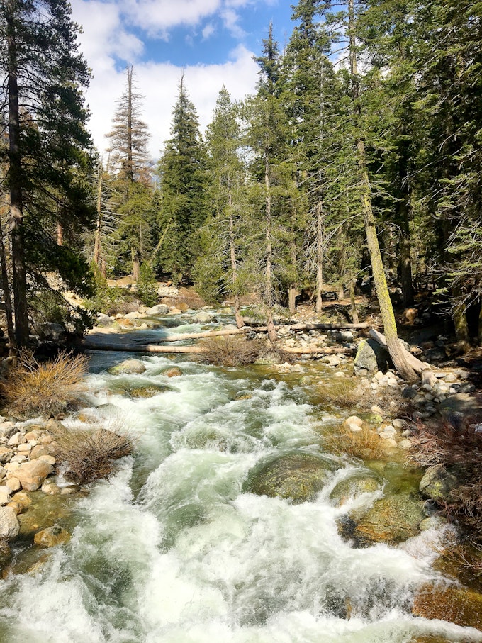 8AM - Rise and Shine! Heated up our famous camping burritos, brewed up some coffee, broke down and packed up camp then hopped in the car to make the 35 minute trek up the mountain. We spent a little extra time pulling over every so often to get out of the car and take in the gorgeous views of the roaring Kaweah River in the valley below.